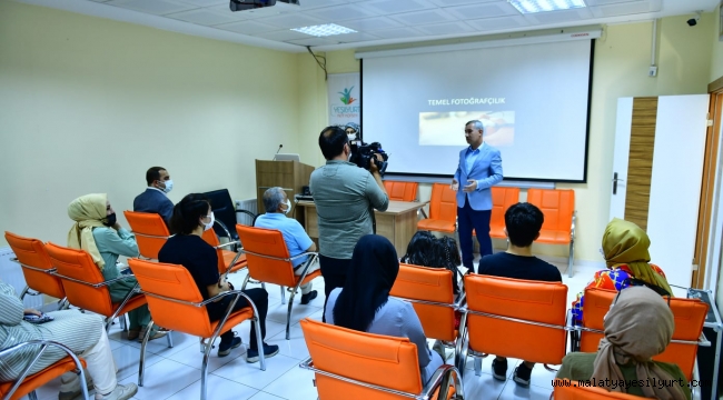 Yeşilyurt Kent Konseyinin pandemi döneminde vatandaşların sosyalleşmelerine destek vermek amacıyla başlattığı kurslar arasında yer alan fotoğrafçılık kursuna katılan kursiyerlere fotoğrafçılık temel eğitimleri ve çekim teknikleri konularında eğitimler veriliyor.