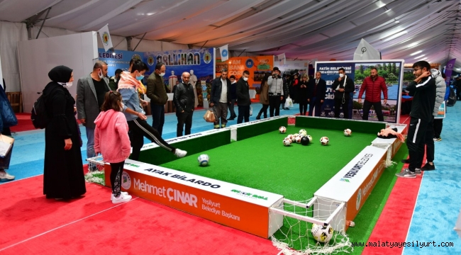 Malatya’nın dünyaca ünlü kayısısının tanıtımına farklı bir soluk getiren kayısı çekirdeği kahvesine olan hayranlıklarını dile getiren gençler stant önünde kurulan ayak bilardosu alanında hünerlerini sergileyip, zamanlarını faydalı geçiriyorlar.